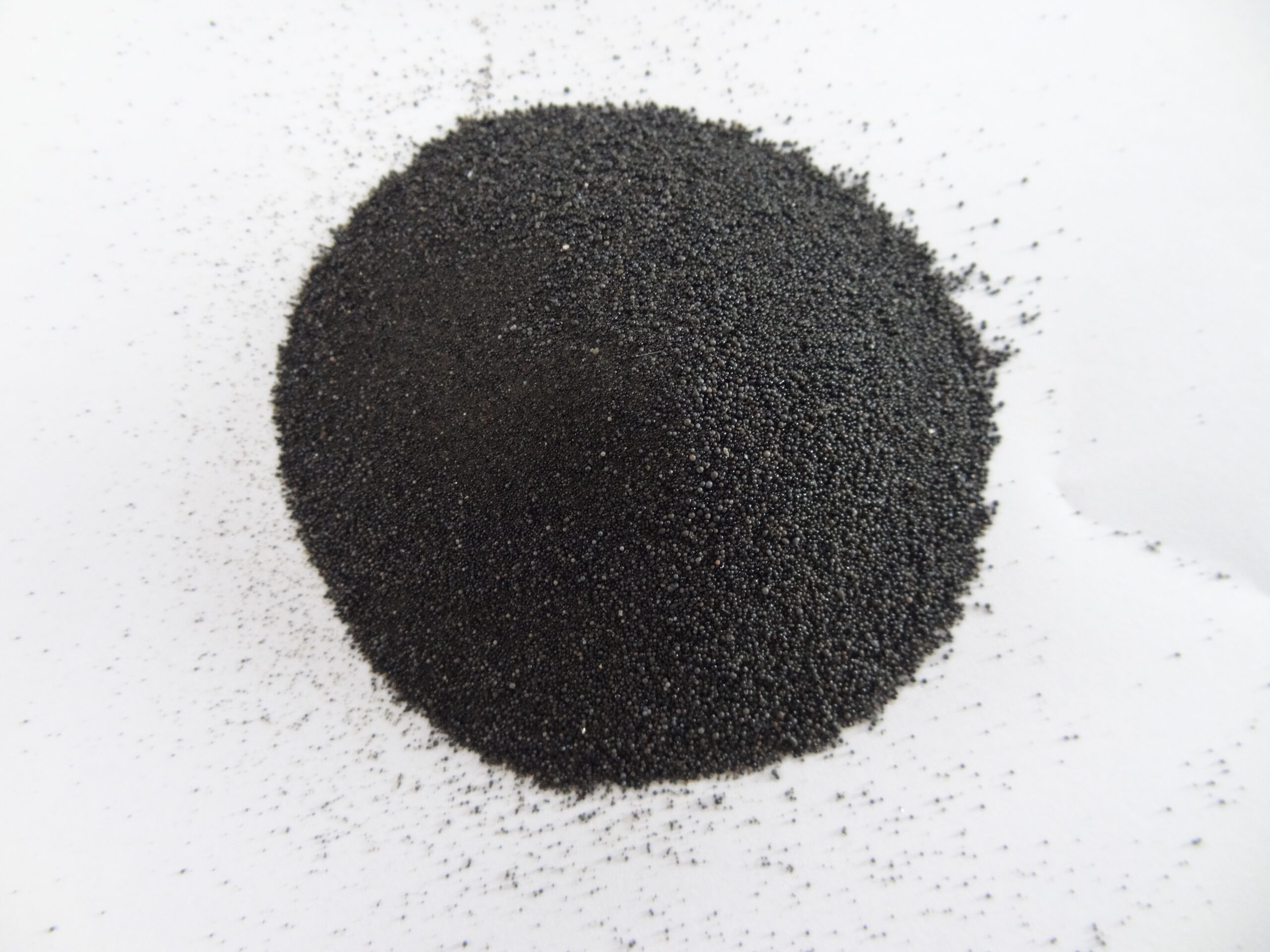 Angularidade: 1,1 máx., semelhante à de uma esfera. Densidade aparente: 1,95-2,05 g/cm³. Refratariedade: 1790 °C mín.